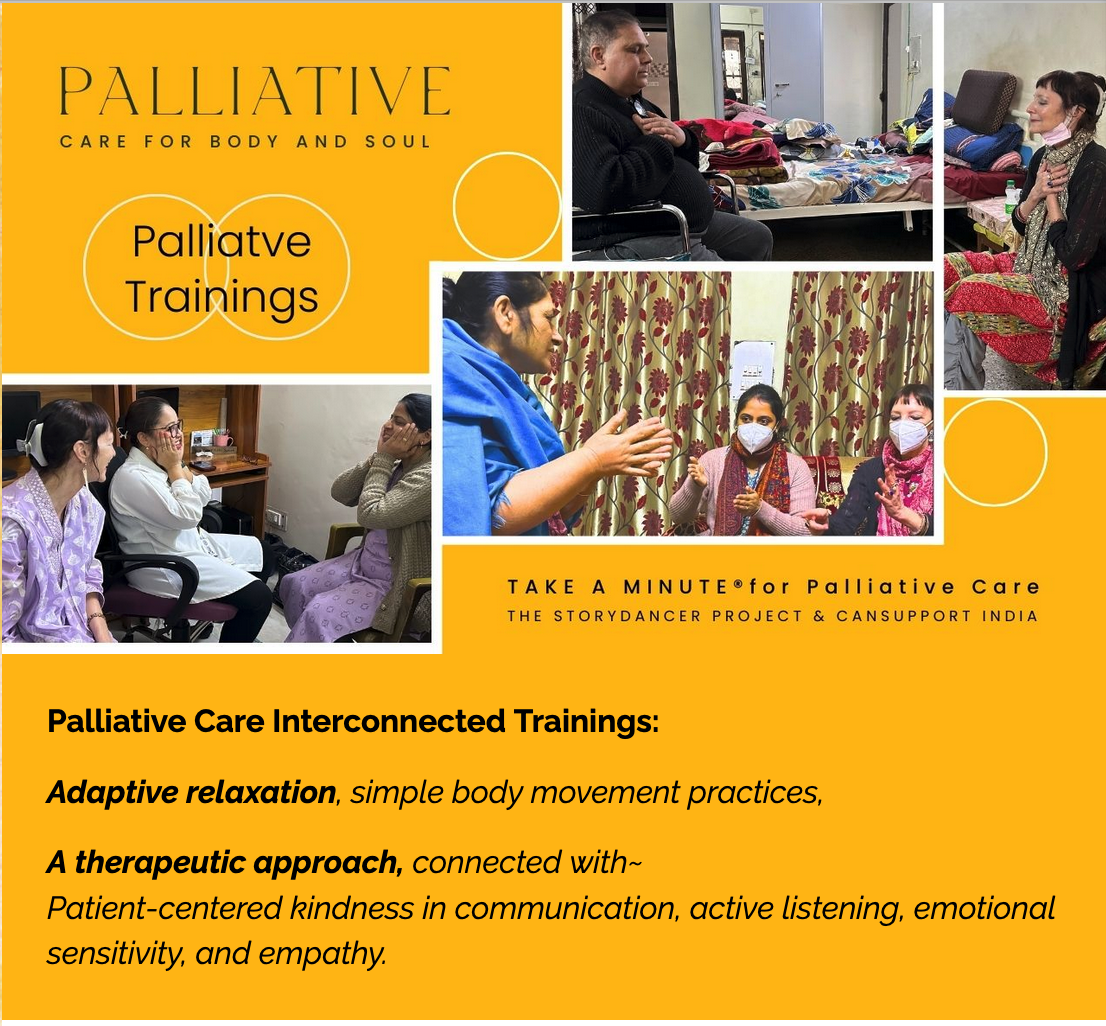 Why is this taking place in India? Delhi, India with CanSupport, India’s largest free home-care team organization and one of our longtime partnerships, is a place where requests for trainings have opened their doors. There was a need, and it now has become a real work in the art of human caring. The Home Care Teams are made up of a doctor, nurse, and counseling psychologist. The counseling psychologists are those who are being trained in these simple and effective practices. The training touches into deep caring for humanity, as well as the application and approach to the connection with those who are in need. It’s a beautiful thing to witness.